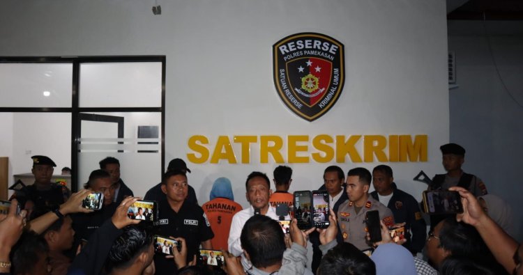 Konferensi pers yang digelar di Ruangan Reskrim Polres Pamekasan, Jumat (7/11/2025) sore, dipimpin Kasat Reskrim Polres Pamekasan didampingi Kapolsek Tamberu dan Kasihumas Polres Pamekasan. (*)