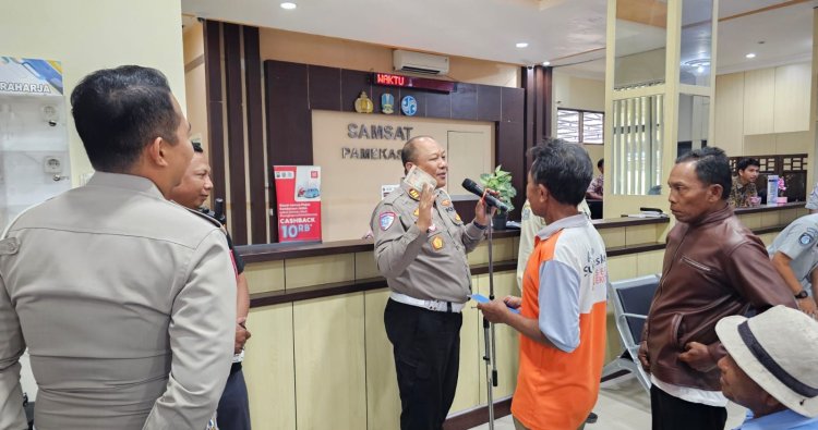 Kali ini, Kasat Lantas Polres Pamekasan AKP Bagus Wijanarko turun langsung menyapa sekaligus memberikan sosialisasi kepada masyarakat di ruang pelayanan Registrasi dan Identifikasi (Regident) BPKB Satlantas Polres Pamekasan, Sabtu (31/10/2025)