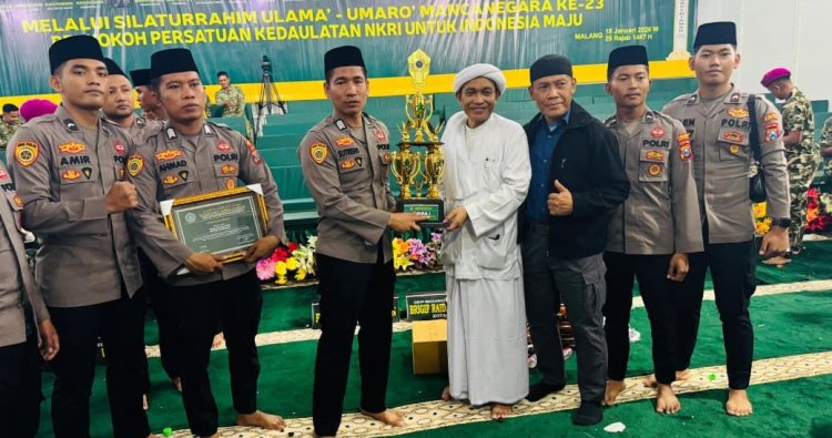 PAMEKASAN - Tim Al Banjari Polres Pamekasan meraih Juara I Festival Sholawat ke-8 TNI-POLRI Se-Jawa Timur yang digelar oleh Yayasan Darul Hikmah An-Nawawi, Kec. Sukun, Kota Malang, Jawa Timur, Minggu (18/1/2026).